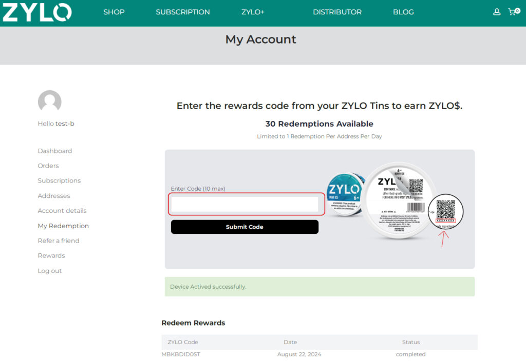 Have a unique code from a ZYLO product? Scan or type in the code to redeem it.