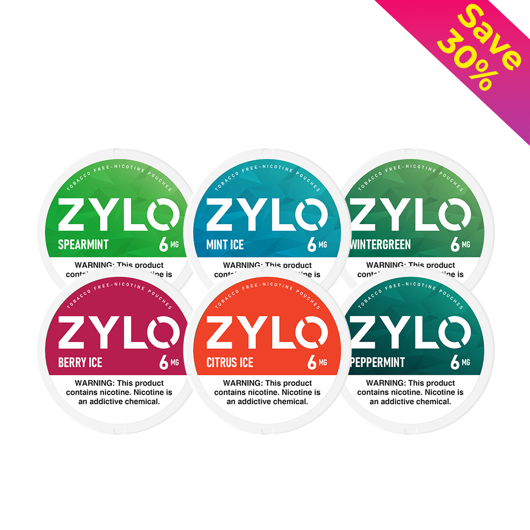 This Starter Bundle comes with 10 Cans to try out the different ZYLO pouches tasty flavors are.
